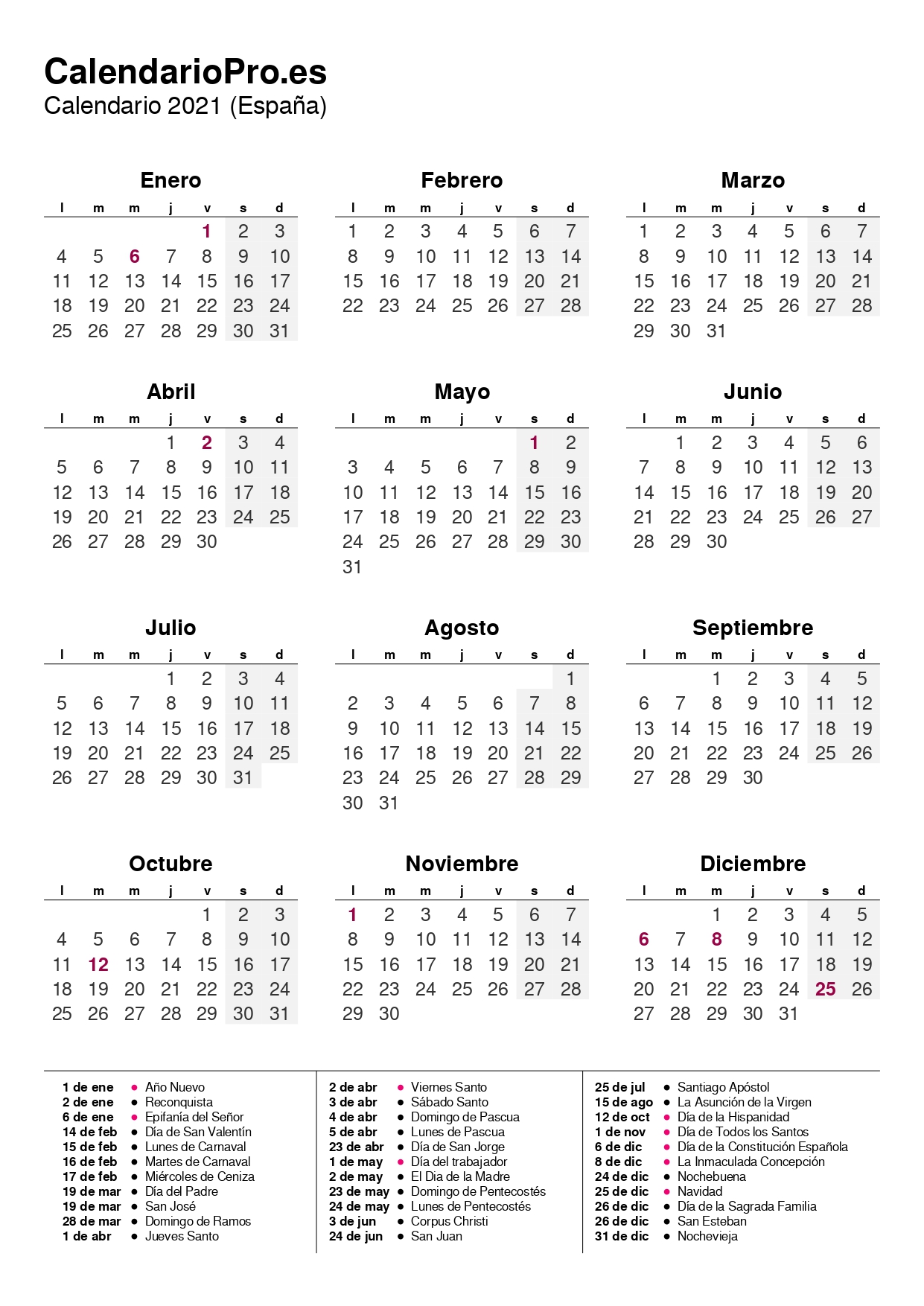 ¿Buscas un calendario 2021 claro y completo, con festivos, para imprimir en casa o en la oficina?